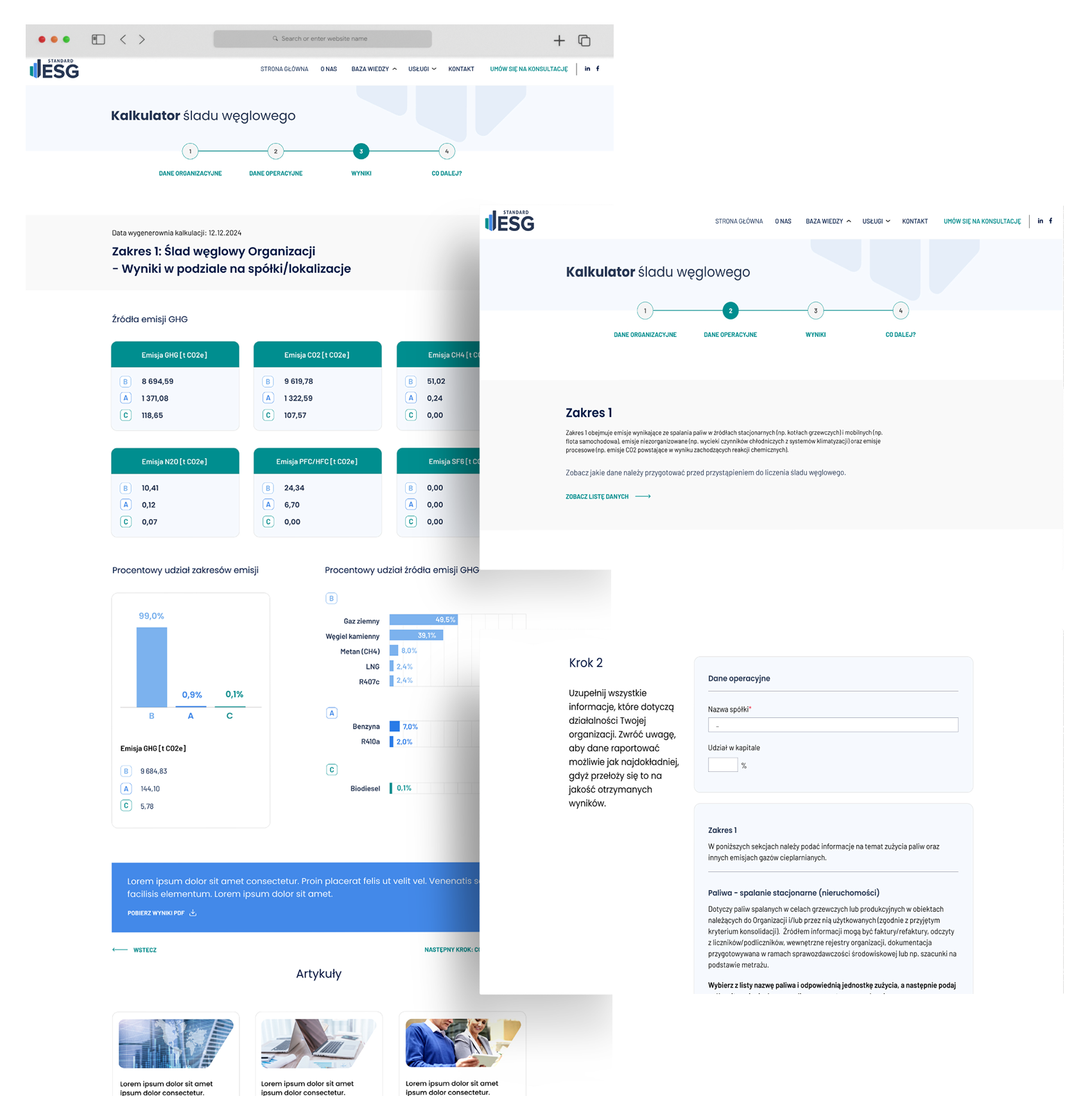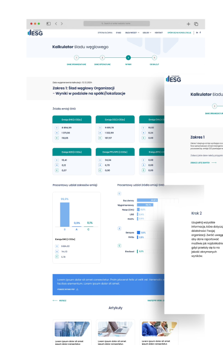 Stworzenie nowoczesnej strony internetowej, w pełni zintegrowanej z identyfikacją wizualną ESG Standard. Kluczowym elementem projektu był także interfejs kalkulatora śladu węglowego, który wspiera firmy we wdrażaniu zasad ESG.