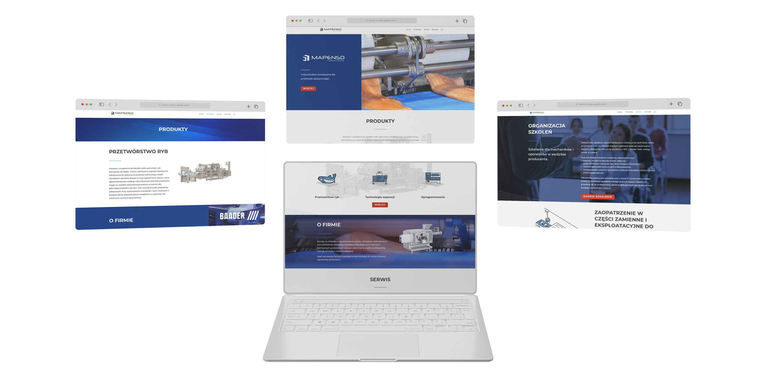 Najważniejszym elementem projektu był projekt i wdrożenie nowej strony internetowej Mapenso. Strona została zaprojektowana z myślą o przejrzystości, łatwości nawigacji i dostarczeniu informacji klientom. Dodatkowo, wdrożyliśmy funkcje takie jak formularze kontaktowe, które ułatwiały interakcję z klientami oraz sekcje zawierające informacje o produktach i szkoleniach.
